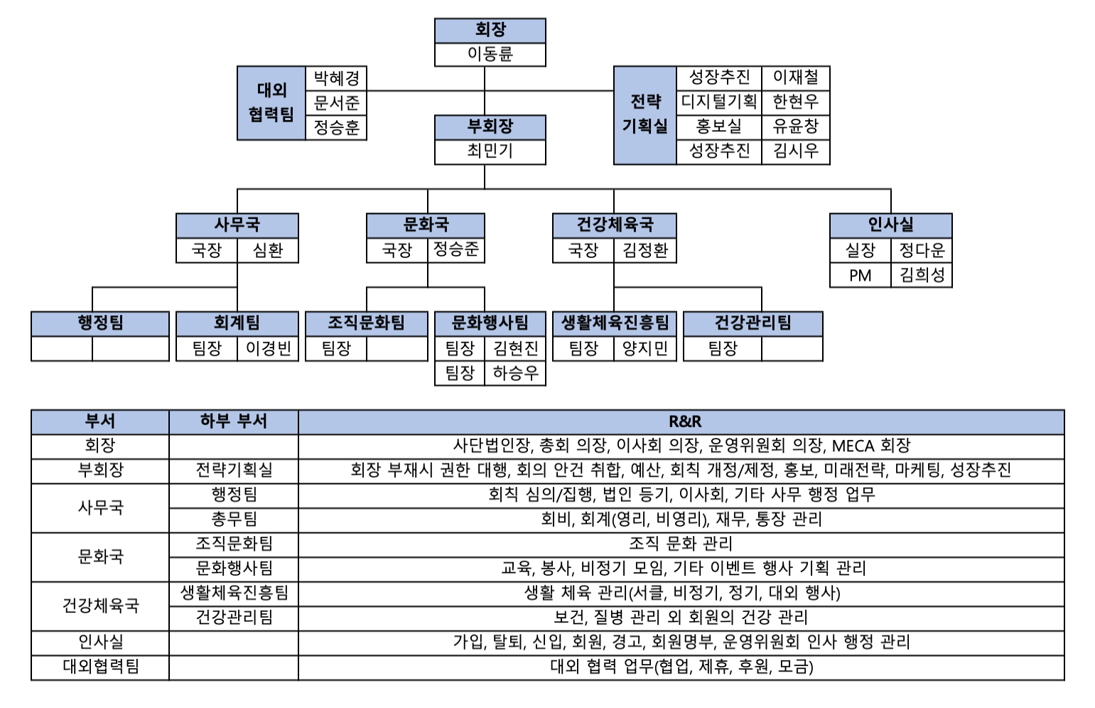 ※ 조직 구성원은 정기 총회 및 이사회를 통해 변경될 수 있습니다.
